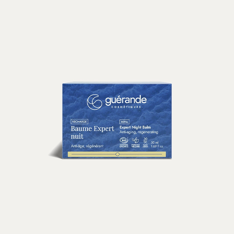 Le Baume Expert Nuit Recharge bio Guérande Cosmétiques est une crème visage anti-âge conçue pour régénérer la peau pendant le sommeil. Chaque matin, la peau est hydratée, nourrie, repulpée et lumineuse.
