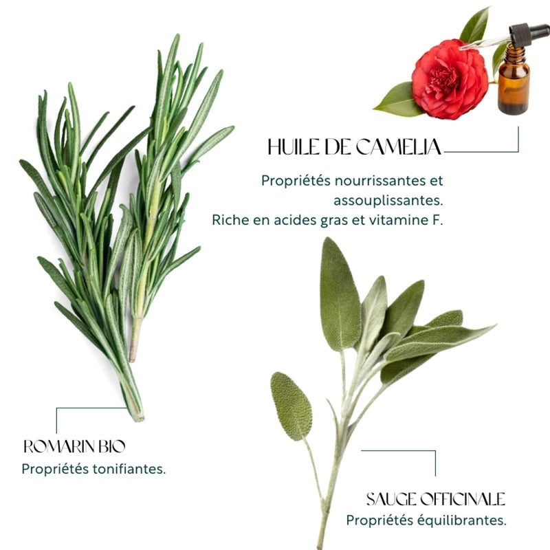 Le shampooing soin aux plantes Martine Mahé est formulé à base d'huile de camélia et de coco, ainsi que d'un concentré d'actifs végétaux (sauge, romarin) aux vertus bienfaisantes pour vos cheveux.