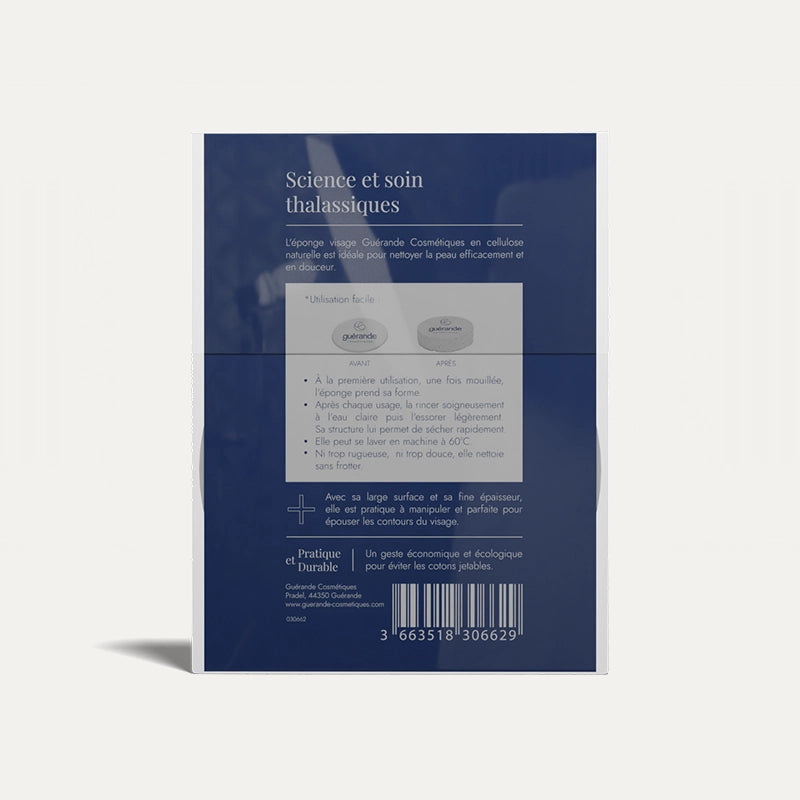 L’éponge visage en cellulose naturelle de Guérande Cosmétiques offre un nettoyage doux et efficace pour tous les types de peau. Sa texture équilibrée - ni trop ferme ni trop souple - permet de retirer impuretés et résidus sans frotter ni irriter.
