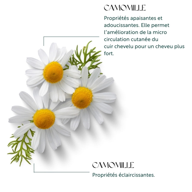 Particulièrement adapté aux cheveux blonds à châtains, ce shampooing associe sa base lavante très douce aux propriétés de la Camomille matricaire, connue depuis toujours pour son pouvoir éclaircissant.